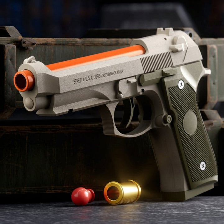 The Beretta M9A3 Mechanical Soft Bullet Toy Gun brings realistic handgun operation into a safe foam-dart format. this M9A3-style nerf pistol is an excellent choice for foam battles, cosplay loadouts, and collectors who appreciate realistic features.