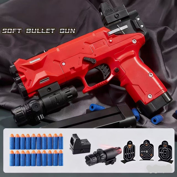 Empty-chamber hold-open: The slide locks back when the magazine is empty—realistic feature loved by foam-blaster fans.