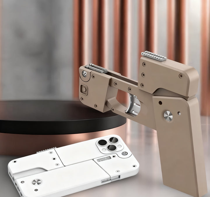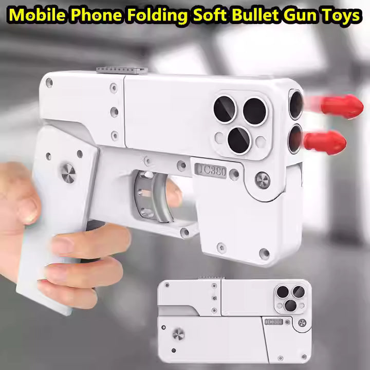 Think it’s a phone? NO! NO! NO! It’s a blaster—crazy cool! ,This is the coolest looking pistol .Meet the IC3SO Foldable Phone-Style Scatter blaster—a compact, foldable toy that looks like a smartphone but packs playful, mechanical fun. it’s an eye-catching choice for gadget lovers and desk-toy fans alike.