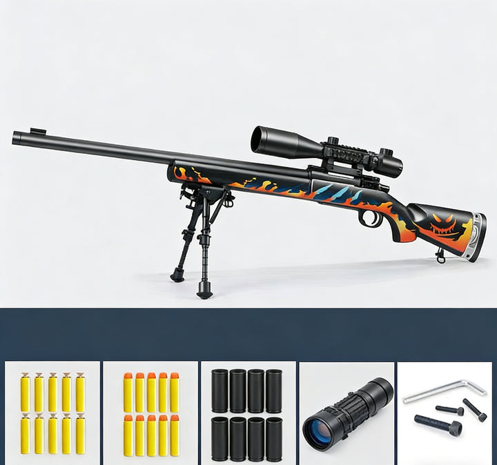 The Eagle M24 Manual Shell Ejecting Sniper Soft Dart Blaster delivers a realistic sniper experience, featuring manual bolt-action priming and shell ejection. it perfect for target practice, sniper role-playing, and competitive shooting.