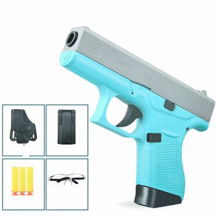 Jinming Glock 43 style blue nerf pistol Compact, realistic, and easy to carry, the JM G43-Style nerf pistol is built for dual-mode operation. Whether you want precise single shots at distance...