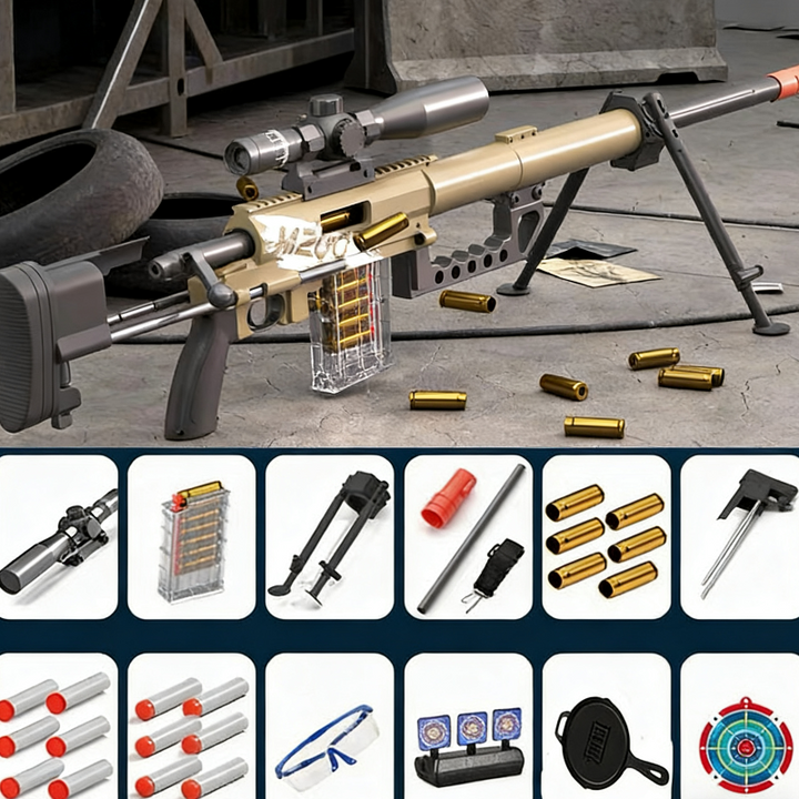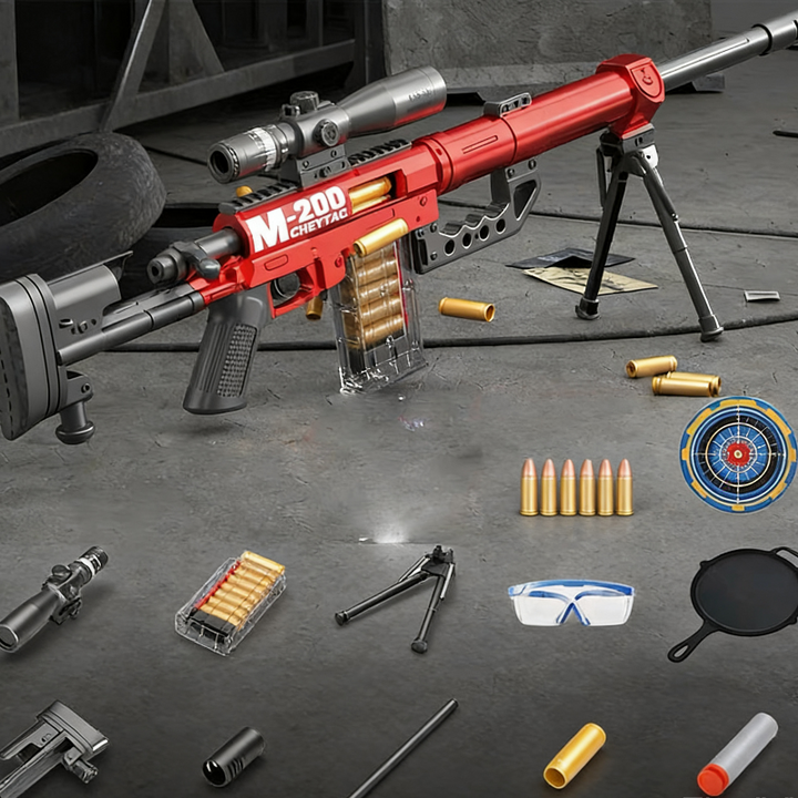 The M200 bolt action nerf gun sniper rifle is a full-size 130 cm foam dart blaster modeled after the iconic M200 anti-material rifle.
