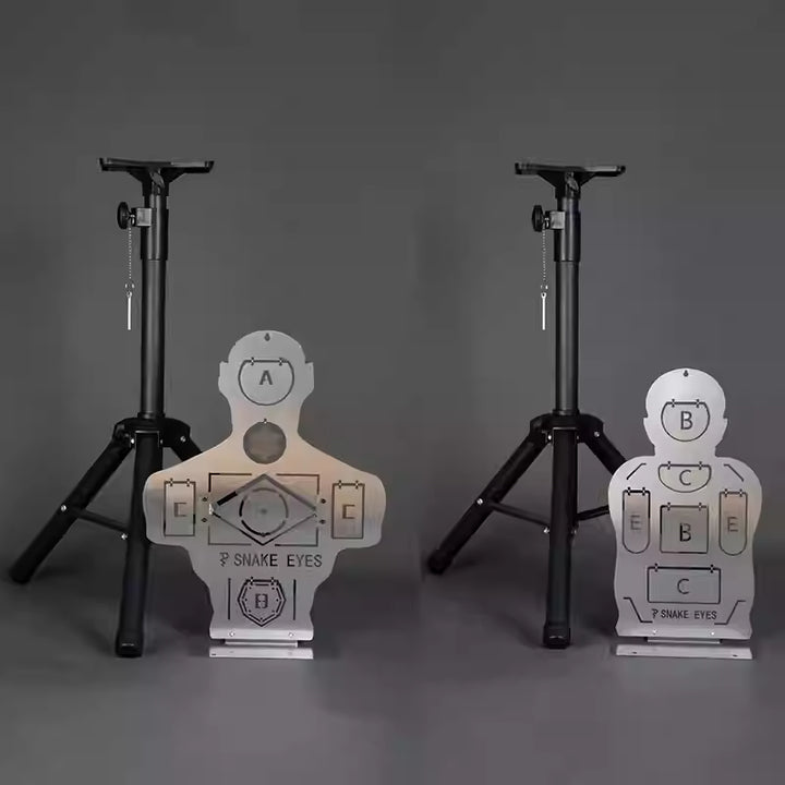 Toy gun steel shooting targets with stand Description This stainless steel human-shaped target is designed for practice and display, featuring a crisp, loud hit sound, thickened brushed steel plate, and a...