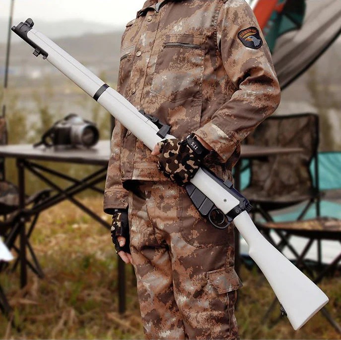 This white metal Lee-Enfield rifle is constructed from a combination of highly durable metal and ABS plastic.