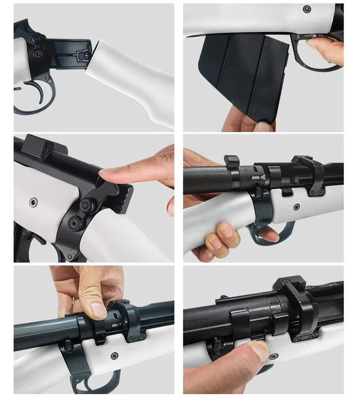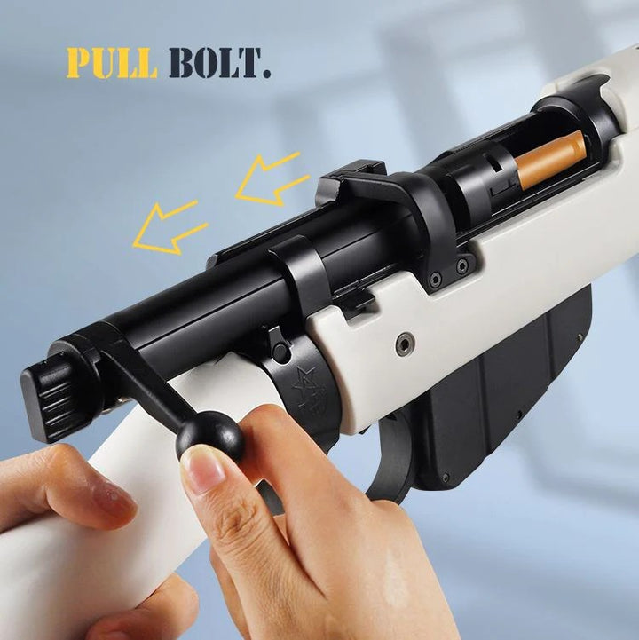 This white metal Lee-Enfield is a meticulously crafted reproduction of the legendary British bolt-action rifle, reimagined as a powerful Nerf sniper rifle. Whether you're looking for a backyard game or a collectible, this rifle seamlessly blends history with the thrill of foam-blasting fun.